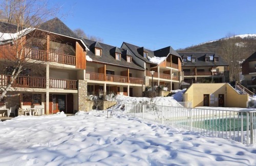 Residence "La Soulane", 1'000 m a.s.l.. 68 apartments in the residence. In the hamlet Aranvielle 1 km from the centre of Loudenvielle, 26 km from the centre of Bagnères-de-Luchon, 80 km from the centre of Lourdes/Tarbes, on the lake, 8 km from the skiing area, in the countryside. For shared use: swimming pool heated (depth 120 - 180 cm, seasonal availability: 01.May. - 30.Sep.). In the complex: reception, WiFi, sauna, fitness room, washing machine, tumble dryer (for shared use, extra). Breakfast. Parking (limited number of spaces). Shop 1 km. Slopes 8 km, ski school 8 km. Nearby attractions: Centre thermo-ludique Balnéa 1 km. Well-known ski regions can easily be reached: Télécabine Skyvall (Peyragudes) 800 m, Val Louron 8 km, Peyragudes 11 km. Well-known lakes can easily be reached: Lac de Génos. Please note: the photograph shows a typical example. The holiday properties may differ in living space, floorplan, equipment and furnishing.