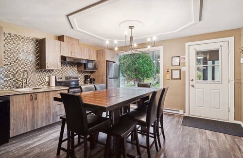 Welcome to our charming chalet, La Source, by the river. Ideally located in the heart of nature. With a capacity for 10 guests (8 adults and 2 children), 1 full bathroom, a Babyfoot/Ping Pong table, and a karaoke machine for fun evenings.