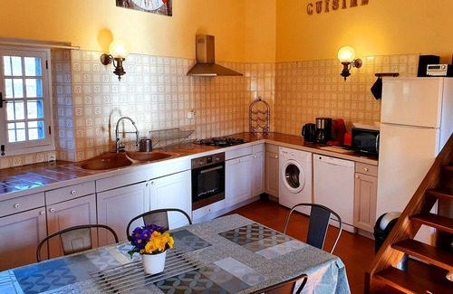 This space is completely reserved for you. No cohabitation with other tenants. Breakfast is included in the price. Your dog will also be welcome in this private suite composed of a large bedroom with a view, a bathroom with large shower and wc, a living room with fully equipped kitchen including dishwasher and washing machine , a dining table, a living room with television and an enclosed terrace with barbecue, gas plancha and pizza oven. The whole is located in a large stone house on the heights of the hilltop village of L’Epine, the starting point for many hiking and cycling tours. Free WIFI. Private parking for one car.