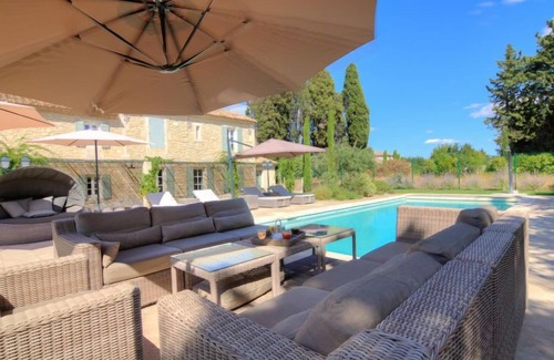 Mas "La Villebague", built in 1850, renovated in 2012. In the resort, 1 km from the centre. Private: property 700 m2 (fenced) with trees, swimming pool heated (5 x 12 m, depth 130 cm, seasonal availability: 01.Mar. - 30.Oct.) with shutter cover. Pool house with fridge, table tennis, terrace (200 m2), garden furniture, barbecue. In the house: central heating system. Linen change weekly. Pre-arrival grocery service. Motor access (300 m via unmade road). Shop 800 m, restaurant, railway station "Avignon TGV" 21 km. Golf course (18 hole) 10 km, tennis 800 m. Nearby attractions: Les Baux de Provence 11 km, Cité des Papes 23 km, Gordes 45 km, Marseille 88 km. Private parking on an adjoining ground of 800 m². Ground closed by an electrical portal. Possibility of taxi service on request (extra) by the keyholder.