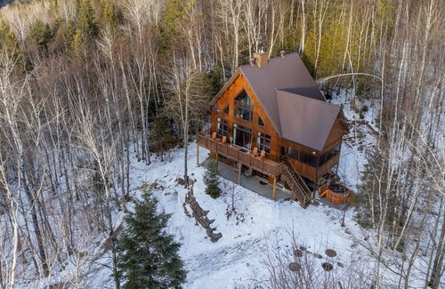 Beautiful rustic 4-season cozy cottage on hillside (1h from Montreal). Very intimate with no direct neighbours, peaceful and surrounded by nature. Enjoy a Scandinavian hot tub under the stars and a nice fire pit to cook marshmallows or steaks. Patio is lit for evenings outside. Near l'Assomption River and most services 15min away. Great activities nearby.