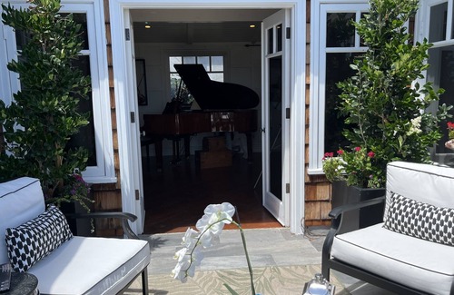 Spectacular North Laguna Ocean View Custom Beach House just steps to Beach. 31 day rental, Discounts available for additional seven day increments. The Beach House was recently honored by VRBO as the home selected to be featured in VRBO/Home Away milestone announcement of 1 million properties worldwide. This Panoramic Ocean view 4100 sq ft home is considered one of the loveliest in Laguna Beach and blends an air of timeless Sea Cottage with California style. Each french casement window opens to a view of the Pacific Ocean and the sound of waves crashing on the beach. Enjoy One Level Living in a Two Level Cottage Home. Main living level includes beautiful living room encircled by wrap around porch and is completely surrounded by windows with Ocean view. Gourmet Kitchen and dinning with fireplace also command a beautiful blue water view. Two staircases enhance the charming and practical floor plan. Main level also includes Master Suite (over 1,000 sq ft) with spacious Library / sitting room with fireplace. Southern Exposure ensures year round light and fresh air from 80 lineal feet of windows and doors as well as morning and evening sun and air. Panoramic Pacific White Water Views from Dana Point to Catalina Island. The second level includes two spacious bedrooms and two bathrooms as well as large family room and laundry room. French doors open to outside brick and stone patios The house is only an 800 ft walk to beautiful Crescent Bay Beach (a local secret). Located in convenient and quiet North Laguna, close to Crescent Bay Beach and a short walk to Village restaurant shops or Village . The house is conveniently located near the Trail Head for walking and hiking in the hills above Laguna. A bit more detail on the house. Two story, 4100 sq ft with 3 bedrooms and 3.5 bath and on site parking. Gourmet Kitchen is an entertainers dream with white marble counters, Sub Zero and La Cornue Range and a 180 degree ocean views from every window. Two living rooms, Wood floors and French doors and Windows throughout. Master suite includes beautiful views of the Pacific Ocean, king bed , library, siting room with fireplace . Master bath includes Jacuzzi tub, separate clear view glass enclosed shower .. Beach house also has 3 fireplaces, washer/dryer and Patios on first and second floors. Charming style, grand piano and custom wood finishes throughout. Village shuttle service goes by the house every hour. Bedrooms configuration includes Master Retreat king bed, three bedrooms each with one queen bed. .