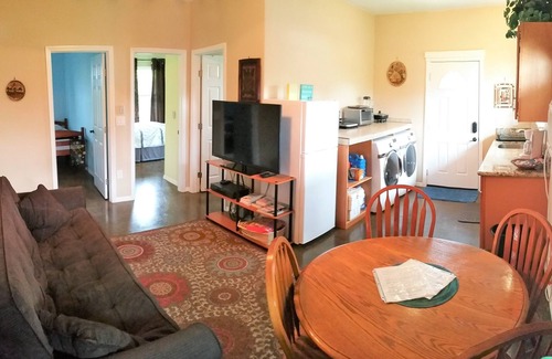Laie, Oahu, North Shore Hawaii, 2 bedroom 1 bath apartment on the side of our newly constructed home. Queen bed in one room and the second bedroom has two twin beds, or it can be set up as a bunk bed, or even pushed together for a couple. Sofa sleeper in the living room - so sleeps 5-6. Full bath, kitchenette, front loader HE washer and dryer. A/C !