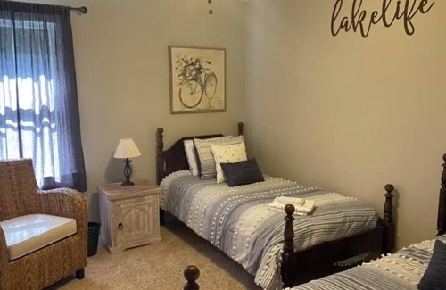 Cottage is very clean and nicely decorated with open living room and full wall glass doors for awesome views of the lake from inside. Home is located on quiet cul-de-sac of very nice, paved subdivision with convenient access (3.5 miles) to groceries, gas, restaurants, etc. Included is privileged use to boat ramp in subdivision (key to lock required for gated access). No highway traffic heard from property - extremely quiet area. Convenient to I-85 and I-95. Bedding: 1 Queen, 4 twin beds (sleeps 6 in bedrooms). NO SMOKING, NO PETS, 6 PEOPLE MAX, NO EXCEPTIONS. Must be 28 yrs old to rent. Note: No cable but you have a 55” Smart TV to log into your own streaming Apps.