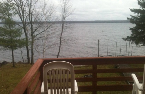 Fireplace-woodstove,direct tv,wi-fi,dock lift station boatlaunch, across the road 18 acres private hunting in the middle of national forest great getaway with all the comforts of home sleeps 6-8 25 miles to lake superior and largest wilderness area in the midwest porcupine mountain state park 25 miles to 3 ski hills and cross country sking trails large deck overlooking lake goegebic and covered porch to enjoy the outdoors on a rainy day