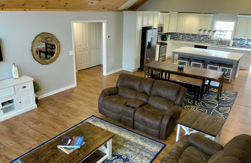 Come visit Fisherman Cove on Lake James. This new construction that includes all the amenities you could ask for in a Lake James retreat. Kick back and start relaxing in this spacious 3 bedrooms 2 1/2 bath. This house is amazing with the huge family-style kitchen and island which is great for catching up with friends and family in an open living room setting. Enjoy the great views from the deck or just hang out at the fire pit. The house is in a cul-de-sac lot near the point. The path is 130 steps down our sloped concrete path to the sitting area by the water from the house where you can fish or swim off the private dock in a quiet cove. You can bring your own boat or PWC to keep at the dock, or you can rent a pontoon boat from the local marina. Play some of the many games we have like horseshoes or corn hole outside. Play ping pong, Foosball, or shuffleboard in the basement, or just hang out and watch Smart TV. The gated community has a swimming pool, a community pavilion with restrooms & fire pit, and covered community dock. Lots of activities and places to explore year round including Linville Falls, Pisgah National Forest, Hawks Nest and 45 minutes to Asheville. To get a great look at this property check out the video .