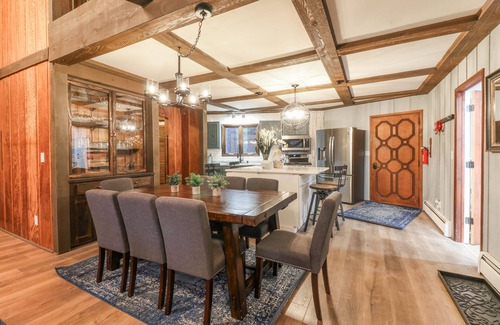 4 bed/2 bath. 2100 sq ft. The open floorplan inside is great for big groups & the spacious main level boasts towering ceilings w barn beams & a knotty pine open staircase. Gorgeous, original built-in dining hutch. Smart home features w Amazon Alexa throughout the entire house. Free access to cable/internet, Disney+, ESPN+, Hulu+, HBO Max, Netflix, Amazon Video & tons of purchased movies/shows. Desk/work area. Game room features an 8' Brunswick pool table, dart board, various games & a 65" 4K FireTV! Main living area also has a 70" 4k FireTV. Fully-equipped kitchen, recently remodeled w stainless steel appliances (including DW). New 4'x4' kitchen island w quartz top & an Alexa Echo Show 8 for entertaining. 7' Mahogany 20th century-style dining table. New luxury plank flooring throughout. Both full baths were remodeled in '21 as well. All 4 bedrooms have walk-in closets w clothing storage, Alexa Echo Dot alarm clocks & luxury beds. Washer/Dryer & PET FRIENDLY!