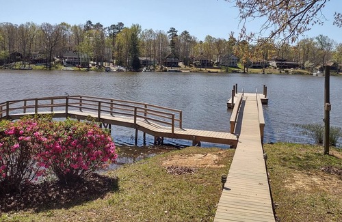 NEW VRBO LISTING!! Beautiful Lake Murray home with a tranquil setting on close to 4 acres! Very nice, large protected area of the lake that's great for swimming, boating, etc. and yet only minutes to the "Big Water" by boat and only minutes to Dreher Island State Park with a marina for all your boating needs! Enjoy 3500 sq ft, 321 ft of water frontage, oversized dock, boat trailer storage on the property, custom boardwalks, walking bridge, and watch the herons perch at sunset! Home is perfect for two families with all the additional beds and space! The open floor plan offers plenty of space for the whole family, with a master on the main level and a second master on the 2nd level and 3rd bedroom on the main floor as well. There is an additional den downstairs and a big room with 2 queen beds and a twin bed. The granite kitchen has a cozy lake setting featuring a beautiful brick hearth accent wall above the cook top. Every window gazes towards the lake, sunroom and a full walk-out basement makes for perfect entertaining! The outdoor oasis offers mature hardwoods and magnificent landscaping. This home has everything for a great family vacation with lasting memories! Home is spacious with many different areas for privacy such as the sunroom, den on main floor, den in basement, covered deck off of main level den, patio area on ground floor, front porch and bedrooms on three different floors! So just bring your float, boat and beach towel BUT If you are looking to book an event (wedding party, etc.), please move onto the next home/NO PARTIES! Book now to enjoy a great time at this beautiful lake front home!!!