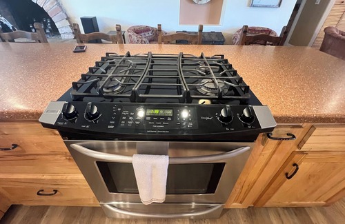 After a day of exploration and adventure, return to this inviting home to unwind and relax. The fully equipped kitchen makes meal preparation easy, whether you're cooking up a feast or grilling on the patio BBQ. Kick back in the cozy living room with comfortable sofas and a flat-screen TV to stream your favorite shows, or step out onto the large second-story deck for stargazing and taking in the serene surroundings.