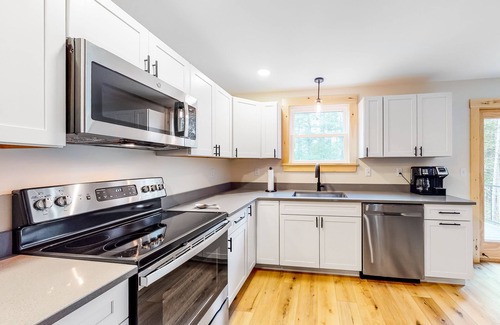 Find yourself perched mere steps away from the calm waters of Moosehead Lake! Lakeview Heights is a wonderful home base for summer adventures and winter retreats alike. After full days of adventure, the full kitchen features every essential to prepare hearty breakfasts each morning and gourmet meals each night. Spend summer afternoons outside on the deck, barbecuing your fresh catch on the gas grill or relaxing around the fire pit, and winter evenings inside, watching Netflix favorites on the flatscreen TV. This home is within walking distance to in-town restaurants, bars, local shopping, a free public boat lunch, and snowmobile trails mere yards away, so you will have no dull moments on this vacation!