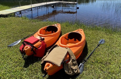 Enjoy Golden and Bald Eagles right from the deck or dock!! The STARS and AURORAs are spectacular too- from our Eagle's Watch property. Everything you need is provided - lake front , kayaks, and PEACE!