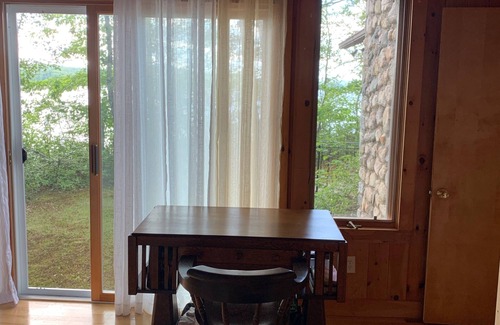 How is this property different? Quite simply, it is our home, not a generic cookie-cutter house, but a unique log cabin built in the 1950s, and expanded in the 90s. It is also ideal for those with mild disability. It is all knotty pine inside, with one open common space, two spacious bedrooms with lake views and en suite bathrooms with walk-in double showers, and a third smaller bedroom with a woods facing window. There is a third full bath with tub. (It is the original bathroom. We NEVER mess with it because the water pressure is fantastic. It's the one where you will wash your hair!) Has baseboard heat with individual thermostats for chilly nights, ceiling fans and floor to ceiling windows lakeside. Fireplace in the common room. All new appliances in a serious cook-equipped kitchen. Two dining tables can seat 18 if expanded, but allows one to be set up for board games or puzzles. Only a few feet from the lake and the dock, with boat mooring. A swim float is a few yards from the dock. Very secluded setting with little boat traffic off of a private road that services only 6 properties. There is an adorable child’s playhouse (equipped with a sink to which a garden hose can attach to provide running water). Canoe available if desired. Propane grill is outside. The property is on the east side of Long Lake, halfway between Naples and Harrison . You will be tempted to photograph every sunset, but none will capture the beauty your eyes will take in. The loons call out all night. This is Maine lake district at its most relaxing. Harrison has been struggling with broadband access but is addressing the issue currently. At present we have internet service, that is unreliable. Recent guests have used their own hot spots successfully, as we do. A new handicap-friendly dock with railings was installed in 2022, new swim float in 2023. There are stairs as well as a ladder from the dock into the lake. The main en suite bathroom has grab bars and can have a toilet frame with assist bars if requested. Two lift chairs (living room and main bedroom) are ideal for Parkinsons sufferers.