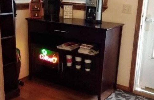 2200 square ft. 3 floor 3 bath lakefront home (2 minute boat ride to big water) with platform dock with boat tie up(bring ropes). We accept dogs under 40 pds only after we verify. Property has high speed internet. The 2 TV's have fire sticks but you must use your own accounts to watch anything other than free. The upstairs bedroom doubles as a living room. (there is no door to the upstairs). Upstairs has a fold out couch, a regular couch and love seat and a comfy big sitting chair, there is also an oversized closet upstairs that is turned into a kids space with 1 futon for sleeping (this futon can only sleep 1 or 2 small kids). Middle floor has a bedroom with a queen bed and an oversized closet with 1 futon for 1 or 2 kids to sleep on, french door opens onto a catwalk overlooking cove. Dining table sits 8 but there is also a small fold out table that sits 4 stored in closet. There is a fold out queen couch on main floor that will have to be put back into couch every morning or there won't be room to move freely around the main area. Kitchen has a dishwasher, doublewide fridge with water, coffee bar with Keurig cup maker, regular coffee maker, coffee grinder, and a cappuccino machine. Walkout screen deck overlooking cove and large lower deck with a table for 6, and another table which seats 6, 2 lounge chairs, 2 umbrellas and small tables, 4 Adirondack chairs. There are 2 TV's with dvd players and over 50 movies. Lower floor has a king size bed with 2 fold out twins in both over size chairs. Leather couch in the common area (which folds out to a queen) and a large matching chair with ottoman. One bathroom per floor. Washer and dryer on lower floor. Exit to large deck is on lower floor or middle floor has an outside walkway going down. Bottom deck has 2 tables which seat 12, multiple chairs & loungers, umbrellas and a BBQ. This house is on a hill so please look at pictures to make sure your party is able to walk the hill. As the Core lowers the lake level the ramp gets lowered also and may b hard to climb down enbankment for toddlers and elderly. If you need a up-to-date pic just ask:) There is a launch ramp within 1/4 mile around corner if you bring a boat. (If you come late in season it may be unuseable and you will have to use Fair Play boat ramp less than 10 away by boat or car. There are 2 kayaks and a two person canoe for your use, please let us know if you need life jackets. The dock is 12 x 10 but does hold a boat and there is 3 adarondack chairs, umbrella and a ladder for swimming.