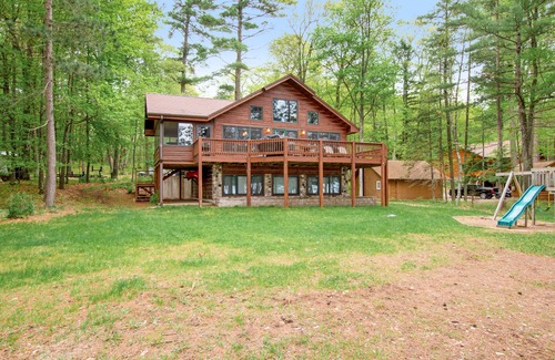 Lakefront dog-friendly home with firepit, play set, dock, & beach access | House in Conover