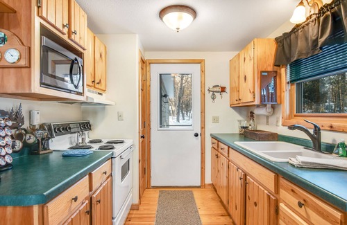 Enjoy an unbeatable location roughly 150 ft to the water at this ground-floor home! Cabin on the Loop-Lower is located directly on Big Lake, located on the Three Lakes Chain o' Lakes, offering a nice sandy-bottom swimming area. Take one (or both) of the kayaks available to the lake and get ready for a thrilling adventure! The backyard offers direct access to the lake, and also boasts a convenient picnic table for meals al fresco, a gas grill, and a firepit. There are so many things to do here! Inside, the wood-burning fireplace will warm up the entire open floor plan in the blink of an eye, which is perfect for snowy and cold winters. Stream your favorite series or movies on the wall-mounted Smart TV, or watch the DVDs you brought using the DVD player available. The kitchen is well-equipped with all the essentials, including a Keurig coffee maker that will delight the coffee enthusiasts of the group. Two cozy bedrooms and a full bathroom make this home the perfect getaway for couples, a small group, and a small family.