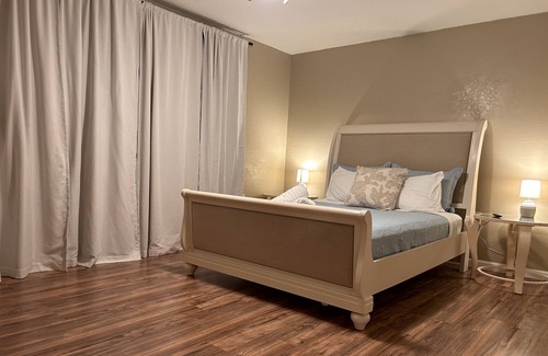 - Master Bedroom - Queen bed, TV, walk-in closet, attached bathroom and an amazing view of the backyard & lake.