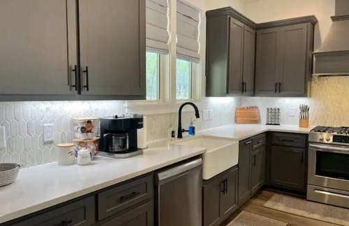 Sweet Serenity is a spacious 4 bedroom, 3 1/2 bathroom house. The open floor plan makes this a desirable rental for your family. There are two primary suites with full private bathrooms, one on the main level and one on the upper level. All bedrooms are furnished with a plush king sized mattress for your comfort.