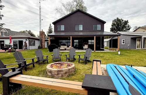 This new build lakefront home provides the perfect gateway for friends and families looking to enjoy the many features of its relaxing hot tub, heated entertainment garage, spacious lakefront porch, cozy fire features, adventurous paddle boards and of course all fun features of the lake!