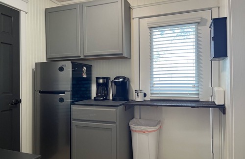 Kitchen: microwave, dishwasher, ice maker, Standard coffee maker, Keurig, Blender, Toaster, Pots, Pans, Dishes, and basic seasonings/herbs.