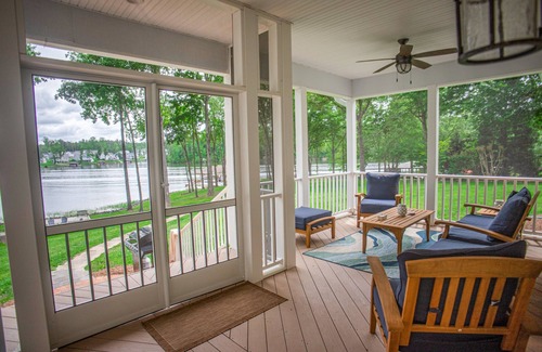 Welcome to your serene lakeside retreat in Mineral, VA! This stunning two-story home boasts tasteful coastal decor and offers breathtaking views from the covered, screened deck overlooking the tranquil lake. Enjoy dining right on your private dock or take advantage of the provided kayaks to explore the water. With a private beach just steps away, you can swim, lounge, or simply soak in the sun.