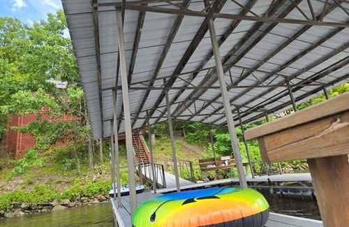 Eagle's Nest Lakefront April-Nov view is Big Water, beautiful Rocky Shore, pristine Forest at confluence Gravois/Osage. ⅛m up the Gravois, near evrythng by water, no Boat? Rental Delivery! at Laketime Boats +others. Car? 5min BarCafe,Pizza,Store,Gas 20min sweet mountain drive to Bagnell Dam or Osage Beach, Rides, Shops, few more to State Parks, Caves. Impecable Natural waterfront setting nourishing to Family