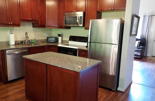 The kitchen has granite countertops, full size appliances, dishwasher, Keurig and drip coffee makers, all the cookware and silverware needed.