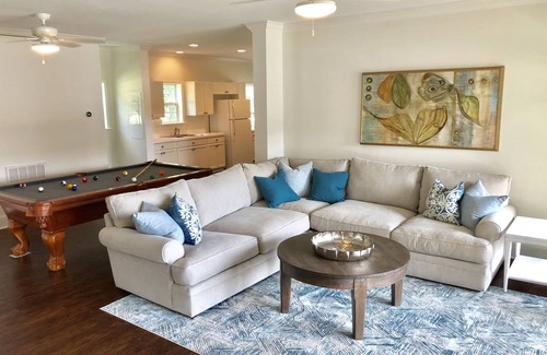 This unique home features an upper level with a great room that is open to a spacious kitchen and dining area. There is also a large outdoor deck with dining and lounge seating that provides beautiful waterfront views! The family suite is on the upper level with one king bedroom and a connected bedroom with two full beds with an ensuite bath that is perfect for parents and children. The lower level has a family room with pool table, summer kitchen, 4 bedrooms (3 king rooms, & a bunk room with 4 twins), 2 bathrooms & a huge covered porch for maximum waterfront relaxation! A simply Amazing Lake Retreat Home!