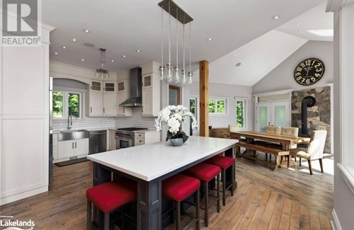 Experience the epitome of luxury at our exquisite cottage on Lake Joseph in Muskoka. Built in 2018, this prestigious retreat offers 25ft high great room, a master bedroom with a huge bathtub, and three amazing bedrooms. Enjoy stunning lake views, a large outdoor hot tub, and a spacious kitchen with Sub-Zero appliances. The post and beam architecture, BBQ, fire pit, and private dock for swimming enhance your stay. Indulge in relaxation and elegance at our breathtaking lakeside haven.