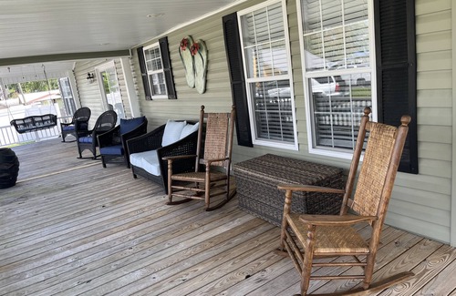 Come enjoy the clear water and the gorgeous sunsets at this spacious three bedroom, two bath home! The giant wrap-around porch is the perfect place to sit and soak it all in - or walk out onto your very own private pier. There are two kayaks and two adult bikes to use. Huge front yard with firepit, picnic table, and plenty of space for yard games and the kids to run and play. The whole group will be comfortable in this spacious and unique place.
