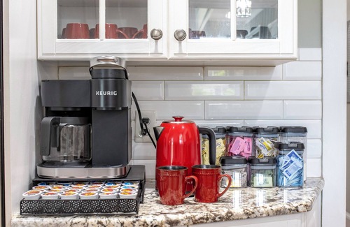 Located off Langtree exit off I-77, Lakeshore Landing is located in a beautiful safe neighborhood. Parking for up to 8 vehicles (if you need more parking ask). As you enter into the main entrance you will see the first of two living rooms on your right. You will see 2 kitchen tables seating 16 people and nearby you will see an island and our fully stocked kitchen. We have stocked the kitchen with dozens of amenities so that you can cook for a large family. Some of our favorite small appliances in the kitchen included Ninja Blender, Keurig Duo Coffee pot (individual coffee cups or brew a pot), George Foreman Grill & many more. One of two laundry rooms is located off the kitchen.