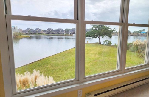 Lakeside Villa 58A Lakefront Beautiful Lakefront Villa in Litchfield By The Sea - 2 Bedrooms, 2 Baths This beautiful condo is in the best location for a panoramic view of Osprey Lake. Bring your binoculars to watch all the ducks and shorebirds visiting this saltwater habitat. This is a spacious villa with extended living and dining area, vaulted ceiling, skylights and lots of windows providing the perfect views. The dining area has seating for 4 with additional 3 seats at the breakfast bar. The living area and master suite open to a screened porch overlooking the lake. The master suite has a queen bed, cable TV, a sliding door opens to the screened porch and there is a private bath. The guest bedroom also has a queen bed, TV and en suite access to the hall bath. The kitchen is fully equipped for your vacation and features a breakfast bar. This villa is comfortably furnished throughout, and great for weekly rentals in the summer as well as monthly stays during the off season.
