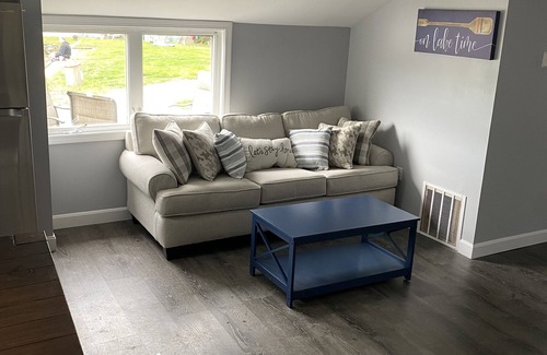 Come stay at this relaxing lakefront home with a private beach, and views to match. Enjoy swimming, fishing, kayaks, and paddle boards (provided) right off the beach. Enjoy one of the fire pits that sits right along the lake with sitting areas, on a good sized yard with play set. This is one of three units and share some of the outside amenities.