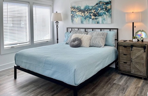 Welcome to our stunning 4-bedroom, 4-bathroom lakeside retreat that sleeps 8 guests comfortably! This pristine haven features a timeless aesthetic with white paint adorning every corner, creating an atmosphere of purity and elegance.