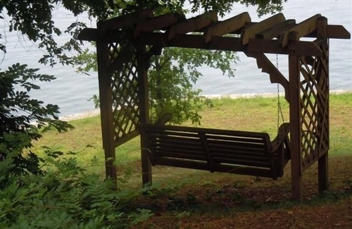 This rustic 3 bedroom, 2 bath lakefront cottage has a fully equipped kitchen, hardwood floors, and a great sun room.The detached master bedroom,affectionately known as the honeymoon cottage,has a king sized bed and a spectactular view .The decks at the main cottage directly overlook the lake and the North Carolina Tusquittee mountains. Situated at the tip of a very private peninsula, it has its own private floating deepwater dock. Bring a boat, fish, swim or just sit on the swing and enjoy the views. Gas grill & cable TV are included with the amenities