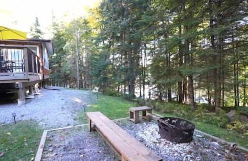 Bunkie is a one minute walk from cottage and very private with it’s own deck, mini fridge, small kitchenette and double bed.
