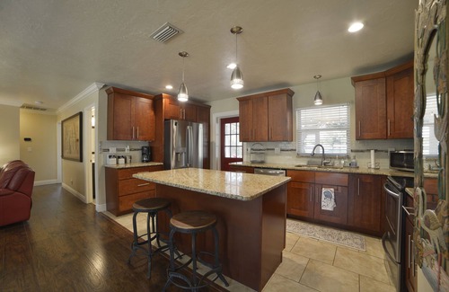 With its bright and airy open concept layout you enter this 2 bedroom/2 bathroom 1100 square foot house into the open-concept living/dining/kitchen room, which boasts a comfortable three-person couch and chair, an HD smart television and dining area. The space is designed to welcome you with its relaxed and cozy color palette to ensure that you feel immediately at ease. Secure, 75mbps Wi-Fi Internet is included throughout the house, of course!