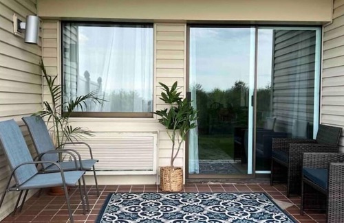 You will enjoy keyless access to a condo with 2 brand new Queen beds and 1 Full bathroom stocked with shower essentials and hairdryer. Other amenities include brand new air conditioning and heating, a new 55” Smart TV, high speed WiFi, Fridge/Freezer, Keurig Machine, coffee and tea mugs, full dishware and utensil sets, Large Storage Dresser, Microwave, electric hot water kettle, work desk, private ground floor walk out patio with access to bbq, picnic tables, and the pool/hot tub should be operational til after Columbus day. Sport court with basketball and pickleball/Fire pit just around the corner. There are also luggage dollies, coin operated new laundry onsite, vending machines, a Great Room with ping pong, an arcade, gym, and parking.