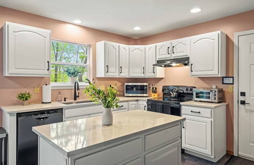Step inside to discover a warm and functional layout across three levels, with rustic touches and room for everyone to spread out. The main living room features a leather sofa, fireplace, and 65" TV, while an additional lounge and a lofted sitting area offer extra space for conversation or a cozy read. The fully equipped eat-in kitchen has everything you need for home-cooked meals, and the adjoining dining room makes group dinners a breeze. Fast Wi-Fi, a dedicated workspace with a monitor, and central air (plus mini splits and window units for seasonal comfort) ensure a seamless stay year-round.