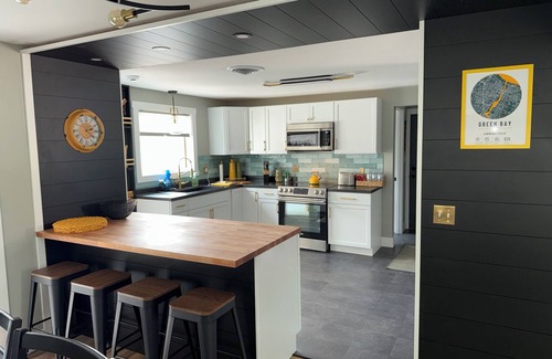 This 4-bedroom house in Green Bay is perfect for your trip to Lambeau! Walking distance to the game, the Resch Center and Titletown. With 2 king beds, 1 queen bed, 2 bunk beds, and 3 futons, there's plenty of space for everyone. Hang out in the backyard with fire pit, eating area and plenty of space to relax while enjoying the Lambeau experience. We'll be available to you while you make the Pressbox your home away from home!
