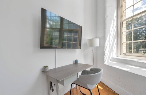 Stay in one of Greenville’s most iconic spots, The American Spinning Mill, where historic charm meets modern comfort just minutes from downtown. Perfect for short-term and extended stays, our fully-furnished apartments feature full kitchens, stainless steel appliances, and high ceilings. Stay active with a 24-hour fitness center, yoga and cardio studios, or get things done in the coworking space. Explore nearby gems like the Greenville Zoo, Peace Center, and Swamp Rabbit Trail.