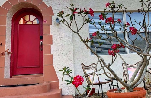 The exterior of the building is monitored by 24-hour surveillance – which we’ve never had to use – but adds an extra level of security. There is a train that runs through downtown Melbourne and can be heard in the late evening and early morning hours. A floor fan is available in the unit if white noise is needed for light sleepers. There are four one-bedroom units in the building; you may occasionally hear other guests. Although only a couple blocks from downtown, the street is residential, so please respect our (11 pm - 8am) quiet hours. Off-street parking for one vehicle/unit behind the house is available. Beware, the archway over the driveway is narrow. A van or SUV is fine but please go very slowly under the archway; you may need to fold in the mirrors. Additional street parking for a second vehicle or larger trucks/vans is available on the other side of the street.