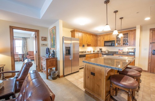 Lodge at Mountaineer Square just steps from the slopes. 6 people sleep