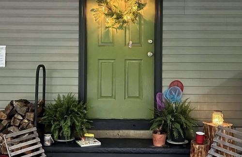 Welcome to The Hive! This three story chalet is perfect for your large family. Our home can fit up to 12 people. Located on a quiet cul-de-sac in Arrowhead Lake Community and tucked right into the woods. It’s the perfect serene setting to start that book you’ve been wanting to read or write. Sit on the back porch looking up at a clear night sky with stars shining bright! Fast wi-fi for you to set up to work remotely in one of two work areas. Wake up and enjoy coffee by one of two indoor fireplaces or on one of our two large decks while wrapped in a blanket. Set up mats on our outdoor stage for morning yoga and have the kids put on a play under the lights. Roast marshmallows in our large stone fire pit.