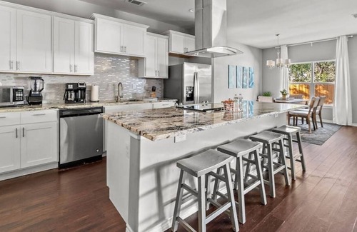 BRAND NEW Construction Home built in 2019 in the heart of Dallas located in the prestigious North Oak Cliff neighborhood. It has an open concept floor plan with all new granite countertops, hardwood floors, stainless steel appliances, washer and dryer and a large driveway, making it the perfect highlight of a great stay in Dallas. First class amenities such as high speed Wi-Fi, smart tv loaded with all your favorite streaming apps (Netflix, YouTube) and cable will make you want extend your trip.