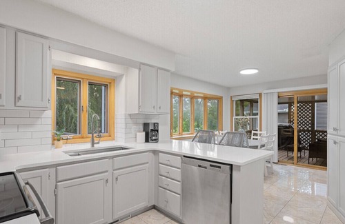 Large, Beautifully Remodeled and Fully Furnished Home in a Quiet Neighborhood. This Home has 5 Bedrooms and 4 Bathrooms and 4 Additional Seating Areas/Living Space and 3 Car Attached Garage. There is 1 King Bed in the Master Bathroom, 3 Queens Beds and 1 Twin. Each Bed has a 12" Memory Foam Mattress and 3 Smart Sony Bravia TV's Mounted. There is a Beautiful Enclosed Porch plus a Large Deck with Access from the Main Dining Area. The Large Deck Leads to a Nicely Kept, Spread-out Yard and Tranquil Pond.