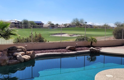 Large Beautiful Golf Course Home with Backyard Oasis! is located in Maricopa. Large Beautiful Golf Course Home with Backyard Oasis! provides accommodation, featuring TV, Fireplace/Heating, Barbecue/Outdoor Cooking, among other amenities. This House features TV, Fireplace/Heating, Barbecue/Outdoor Cooking, to make your stay a comfortable one.