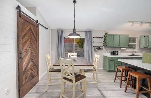 Home features a fully stocked kitchen, living rooms on both levels with large couches & smart TVs, a pool table downstairs, as well as a washer and dryer