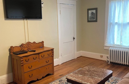 This historic home in Christiansburg, Virginia features a large second floor apartment which combines the charm of a 100 year old house with the modern upgrades and conveniences of a newer property. The apartment is 1800sq ft and includes a a queen bed and two double beds, which comfortably sleeps up to 6 guests. It is conveniently located near downtown, close to an excellent Christiansburg brewery, restaurants and major roadways. It is also a short distance to Virginia Tech, local hospitals and area businesses.