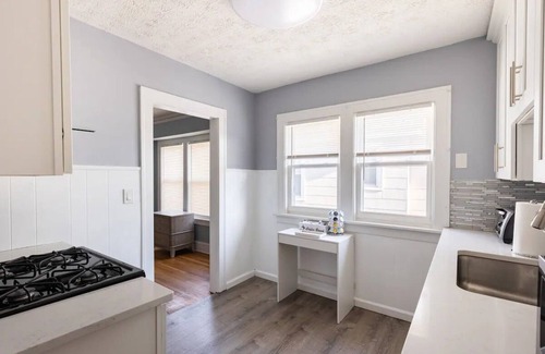 This house in Lakewood features two kitchens, two living areas, two dining rooms, and six bedrooms. Located in close proximity to this home is a great selection of restaurants, bars, shops, parks, and other attractions. Cuyahoga County National Park is within 30 minutes. Boston Mills and Brandywine are 30 minutes away for Skiers and Snowboarders. It sits within 15 minutes of downtown Cleveland and within 20 minutes of Cleveland Hopkins Airport. This home has been beautifully renovated giving it a modern and clean feeling throughout. There are three stories total with private parking in the driveway and onsite washers and dryers.