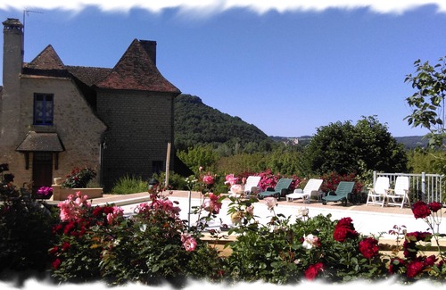Large 11-room residence where life is good. Panoramic view of the Dordogne river and its castles (Les Millandes, Marqueyssac…) Located in the heart of the Périgord Noir near the tourist sites of Beynac, Sarlat, 30 minutes from LASCAUX IV, Les Eyzies, Roque St Christophe, caves of Proumeyssac , Padirac, medieval villages (Domme, Montpazier…) Character house classified 4 stars, great comfort and independence (each bedroom has its own bathroom), everything to make your stay as pleasant as possible, relaxation and games room. In a wooded park with flower garden, closed and closed. Playground, children's hut, bowling green, large terraces with barbecue and plancha, private swimming pool, heated from April 1 to October 15. Rental open all year by the week or by the night.